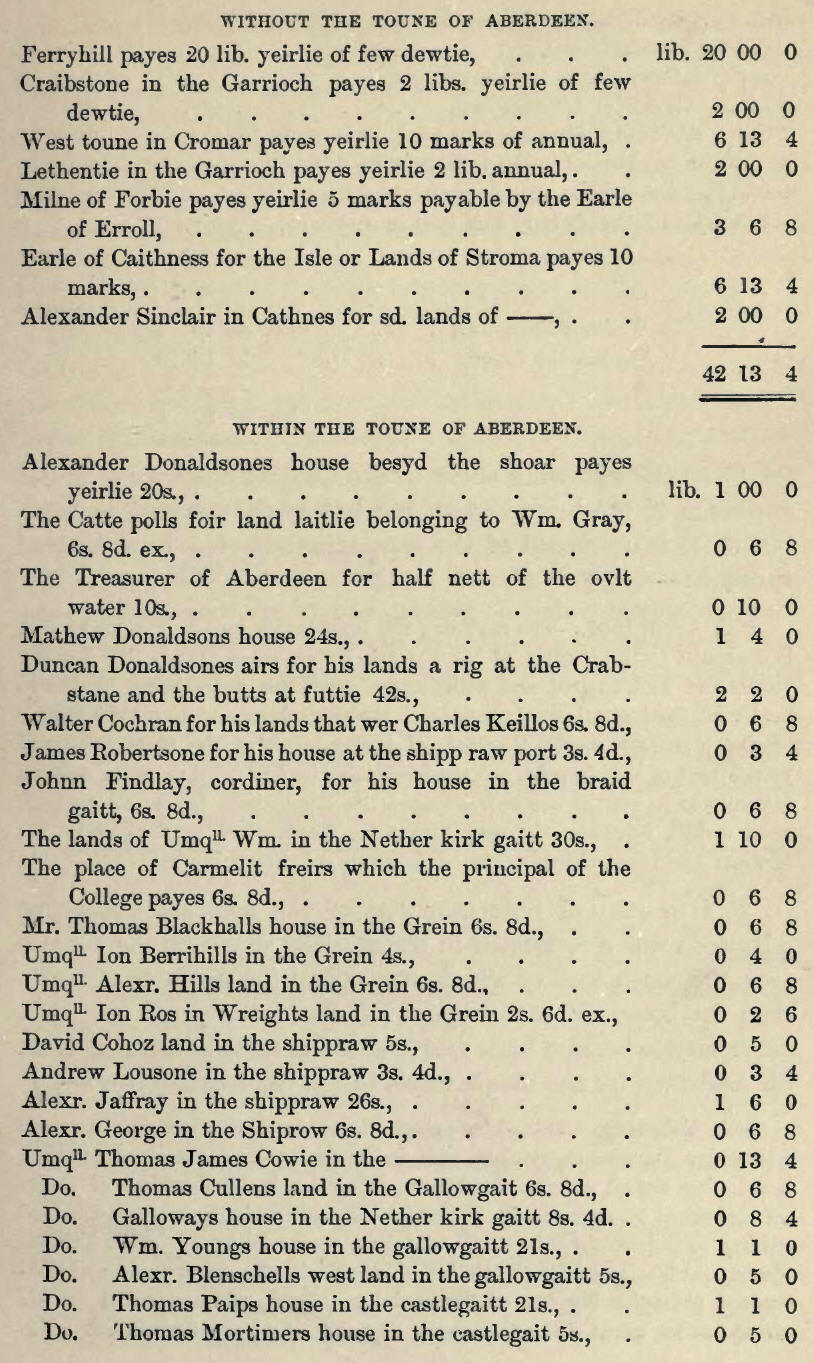 burgesses and of aged virgins born in Aberdeen (present annual revenue