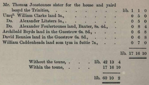 Castlegate, for 1600 merks, and possessed by Robert Mackie, skiper, for
