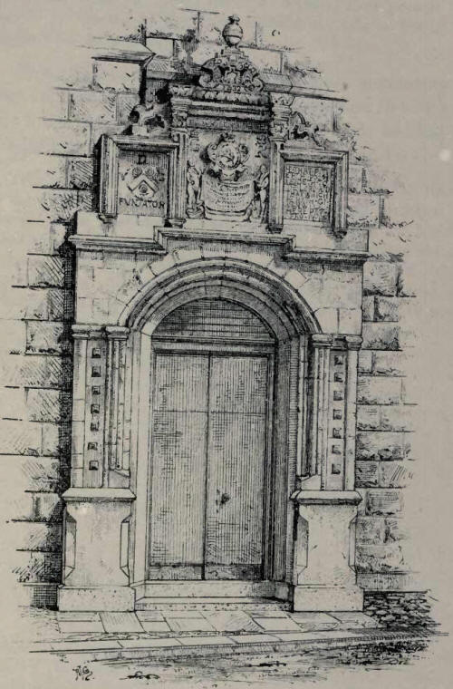 arms of Dr. Guild with the letters D. W. G. Foundator, and the words