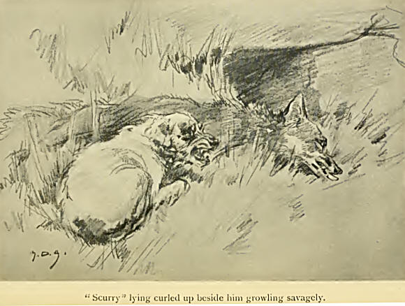 “Once, at Timpendean Castle breeding earth, he got in on Saturday afternoon, and we dug him out on Monday, forty-five hours later. He was fairly wedged in like a wad in a cartridge case, and, though a bit hoarse and feeble in his bark, quite comfortable and unpunished. He was lying on his side, his fore-legs pushed back like a seal's flappers, trying to push himself on with his hind-legs.”
