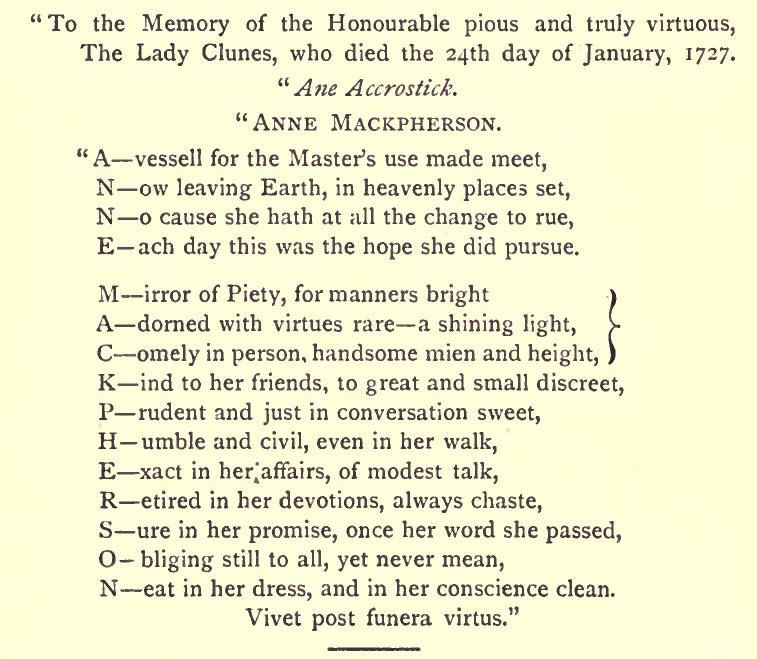 married in 1688, Anne Macpherson of Cluny, as mentioned in a former