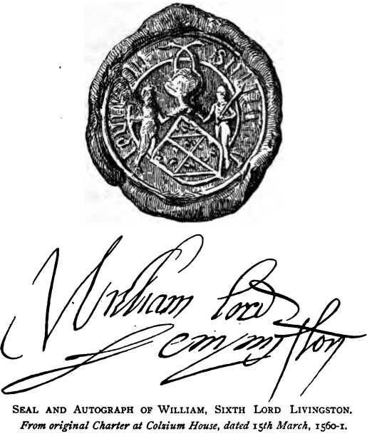 The First Baronet:—The first baronet occupied, if not a great, still a most respectable and prominent place amongst the men of his time. The baronetcy arose out of that dark affair, the connection of Darnley with Mary Queen of Scots. On the 15th May, 1565, the Queen having, at Stirling, created Darnley, who was soon to be her husband, Lord of Arraanach and Earl of Ross, to celebrate his accession to his new titles, the new lord was instrumental in getting fourteen gentlemen of his acquaintance knighted. Amongst the new creations was William Livingston of Kilsyth. It is interesting to notice, in the light of recent conflicts, that Sir William sat on the jury which raised John Erskine to the earldom of Mar. When Queen Mary was in captivity, the ministers of Elizabeth took the utmost precautions for the isolation of the Queen from her Scottish friends, who would very willingly have raised her again to the throne. Setting a close watch on all persons passing between England and Scotland, the bearer of a letter from Sir William Livingston was arrested. The contents of the letter were of a compromising character, and Walsingham, Elizabeth’s secretary, was greatly enraged, believing that his friend Sir William was acting towards him a double part. It is not clear that his attempt to establish communication with Mary was the cause, but, nevertheless, at this time Sir William was banished several years from Scotland* When he is next heard of, in 1574, he is pardoned by the Regent on account of “his great repentance,” and having repaid Walsingham a considerable loan which that minister had never expected to receive, he is once more in favour with the English authorities. On the 15th October, 1580, Sir William was appointed Gentleman of the Bedchamber to James the VI., and when in the following year, Morton, the late Regent, was tried for high treason on account of his supposed complicity in the murder of Darnley, Sir William Livingston was one of the jury of sixteen appointed from among the nobles and gentry of the land who brought in a verdict of guilty. The result of the finding was the execution of Morton.