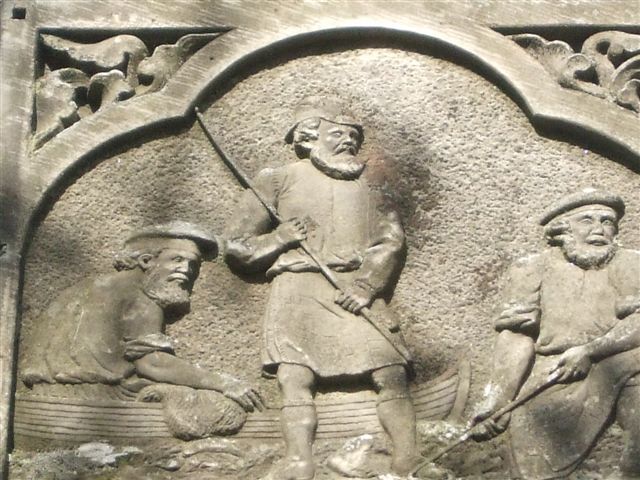 what appear to be Pictish symbols; namely, a horseman above (possibly