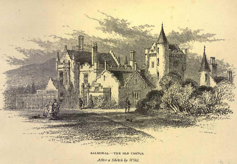 We arrived at Balmoral at a quarter to three. It is a pretty little castle in the old Scottish style. There is a picturesque tower and garden in front, with a high wooded hill; at the back there is wood down to the Dee; and the hills rise all around.
