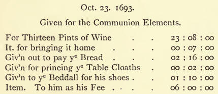On the whole, we should say that the minister and Session seem to have taken an .ntelligent interest in the state of the church. It is a little amusing to break up into detail what we generally now slump as " Sundries." One item stands : " Giv'n out this week for 600 nails." Another: "Giv'n to the Beddall for soweing the thongs of the Bells Tongues." Another: " For prins to ye fastening ye Table Cloath."