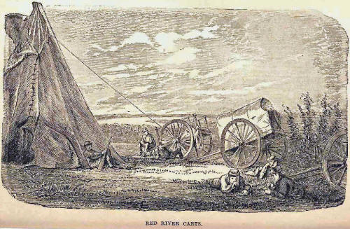 A long winter stares him in the face. There is no market where he can go to for supplies. Offer a man gold for flour in the Saskatchewan and he would laugh at you. $60 per barrel has been tendered to the Hudson Bay Company, and the money has been refused; and no wonder, for every pound of the precious luxury has been dragged over the 1,800 miles from St. Paul, and that in Red River carts. But the good time is coming. The royal standard is now supplanting the bunting of the Hudson Bay Company. Brother Dominionites our majestic rivers invite our steamboats; our natural road extending from the Winnipeg to the Rocky Mountains, wide as the limitless prairie, is waiting for your land transport. This wild, uncouth younger brother of the confederation family only waits the chance for development, and the youth will become, what geographically and naturally he really is, the heart and soul of the country. But I must go back to the camp, and the first thing is to kill the animal, cut it up, and bring the meat to your tent. Then the process of curing and drying takes place. Then follows pounding and making up pemmican. True, you can have help, but my experience of buffalo eaters goes to prove that however numerous the servants, the master is the greater vassal. Then you must shoe your own horse, mend carts, and what is more trying, keep a day and night guard upon your animals, for horses are constantly disappearing very mysteriously. These are some of the toils of the hunter. The missionary has additional ones. Night and morning he collects the people for prayer; he must visit the sick; his tent must be a refuge for the aged and for the afflicted. The avenger of blood is awaiting his time; the missionary must be the mediator.