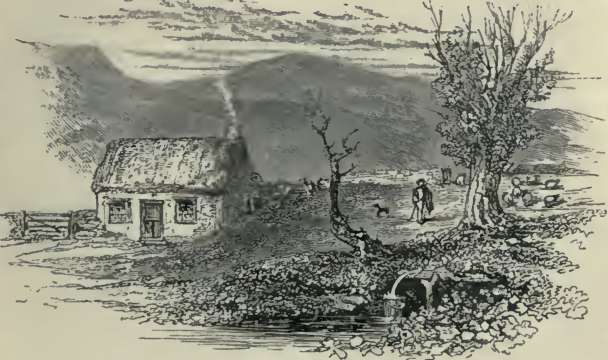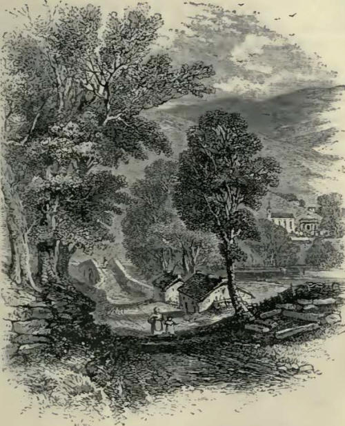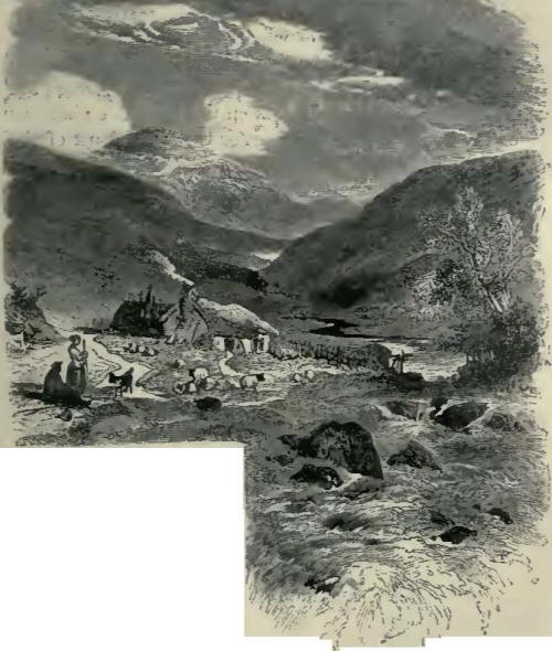 A few miles upward from the lower end of Eskdale lies the little capital of the district, the town of Langholm; and there, in the market-place, stands another monument to the virtues of the Malcolm family in the statue erected to the memory of Admiral Sir Pulteney Malcolm, a distinguished naval officer. Above Langholm, the country becomes more hilly and moorland. In many places only a narrow strip of land by the river's side is left available for cultivation; until at length the dale contracts so much that the hills descend to the very road, and there are only to be seen their steep heathery sides sloping up towards the sky on either hand, and a narrow stream plashing and winding along the bottom of the valley among the rocks at their feet.