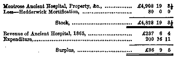 The Burgh of Montrose is of high antiquity. David II., by a charter dated 1st May, in the 40th year of his reign, of new grants the Burgh of Montrose to the burgesses and community thereof “ cum territoriis et communi pastura dicti burgi sibi adjacentibus, cum piscariis infra aquas de North Esk, et South Esk, in crovis, yaris, et retibus antiquis, et consuetis et pertinentibus ad dictum burgum, cum molandinis, sive ad ventum sive ad aquam, et eonim multuris, cum tolloneo, parva custuma, curiis, et earum exitibus habendis et tenendis in locis dicti burgi debitis et consuetis, cum moris, maresiis, semitis atque viis, necnon cum omnibus, .aliis et singulis libertatibus, commoditatibus, aisiamentis, et justis pertinentus quibuscumque, tarn infra dictum burgum quam extra, tarn sub terra quam superterram, ad praedictum, burgum spectantibus, sen quoque modo juste spectare val-entibus, in futurum adeo libere, et quiete, plenarie, integre et honorifice, bene, et in pace, sicut aliquis burgorum nos-trorum Scocie *conceditur.”—In virtue of this charter, the petty customs, multures, weigh-house, flesh-market dues, &c., have been levied. About 58 years ago, the meal and malt mills were disused,’ and since then no multures have been exacted. By a- charter of King James IV., dated 20th September, 1493,.that.monarch.gave and granted to “our lovittes, the aldirmen, balzies, consale, and communitie of our burgh 6f Montrose, and their successoris perpetuallie sifc like privilege, freedoun, charges and ankerages, to be raist and taken at the pere, port, and havin of our said burgh, of all schippis, crearis, and botis, pertening to oure leigis, and strangaris, as is grantit and given be our maist nobill progenitors to the ports of Leyth and Dundee, or any otheris within our realme.” In virtue of this charter, the magistrates levy shore-dues, anchorage, and plankage at the harbour, by which they uphold piers, buoys, and moorings within the harbour. The property of the burgh consists of lands, houses, feu-duties, the harbour, shares in Marykirk Bridge, seats in the churches, money lent to the trustees of the Forfar road, and money in the bank: it amounted in 1832 in gross value to £54,442 16s. 7£d. In 1833, the revenue was £3184 3s. 8Jd.; the expenditure was £4700 17s. 10d.,— extraordinary expenses having been incurred by important local improvements. The corporation revenue in 1839-40 was £3007. The assessments by authority of Parliament are that for the second ministers stipend, the cess or land tax, and twopence on the pint of ale and beer for supplying the town With water; by authority of charter, the shore and harbour dues, the petty-customs, the weigh-house dues, and the flesh-market dues. The Burgh having several years ago adopted the Police Act, the money required for water, lighting, and watching, &c., is levied by virtue thereof on the rental; and the town is supplied with abundance of water both from Glenskenno and Kinnaber.