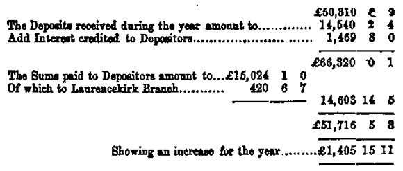 Bank of Scotland. There is, also a savings bank connected with one of the