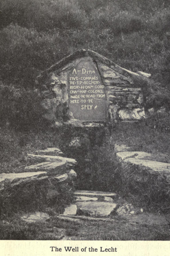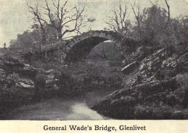 At Ordens, in the parish of Boyndie, the road again divides. One road follows the coast by Portsoy, Cullen, Inchgower (for Buckie) and Fochabers to Elgin, Forres and the north. This road all the way to Moray is probably one of the most level in the county, the only serious gradients being as it passes through Cullen and onward to the Baads. The other line of roadway from Ordens goes through Ordiquhill and Grange, skirting a shoulder of the Knock Hill, to Keith, thence, steadily ascending, to Duff-town. At the Square, while a line branches off to the Cabrach, the main roadway climbs through Glenrinnes to Glenlivet and thence through Kirkmichael, either by the picturesque, birch-lined Avenside road or by the lonely, storm-driven moor of Faemusach to Tomintoul, where it goes in one direction by a more or less precipitous way to Grantown-on-Spey by the Bridge of Brown, and in another, by one of General Wade's roads, over the mountainous Lecht Hills to the upper reaches of the valleys of the Dee and Don.