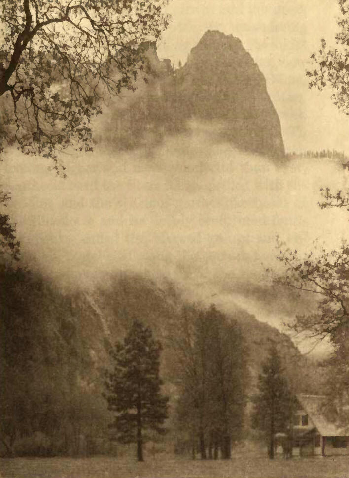 IF I were so time-poor as to have only one day to spend in Yosemite I should start at daybreak, say at three o'clock in midsummer, with a pocketful of any sort of dry breakfast stuff, for Glacier Point, Sentinel Dome, the head of Illilouette Fall, Nevada Fall, the top of Liberty Cap, Vernal Fall and the wild boulder-choked River Caņon. The trail leaves the Valley at the base of the Sentinel Rock, and as you slowly saunter from point to point along its many accommodating zigzags nearly all the Valley rocks and falls are seen in striking, ever- changing combinations. At an elevation of about five hundred feet a particularly fine, wide-sweeping view down the Valley is obtained, past the sheer face of the Sentinel and between the Cathedral Rocks and El Capitan. At a height of about fifteen hundred feet the great Half Dome comes full in sight, overshadowing every other feature of the Valley to the