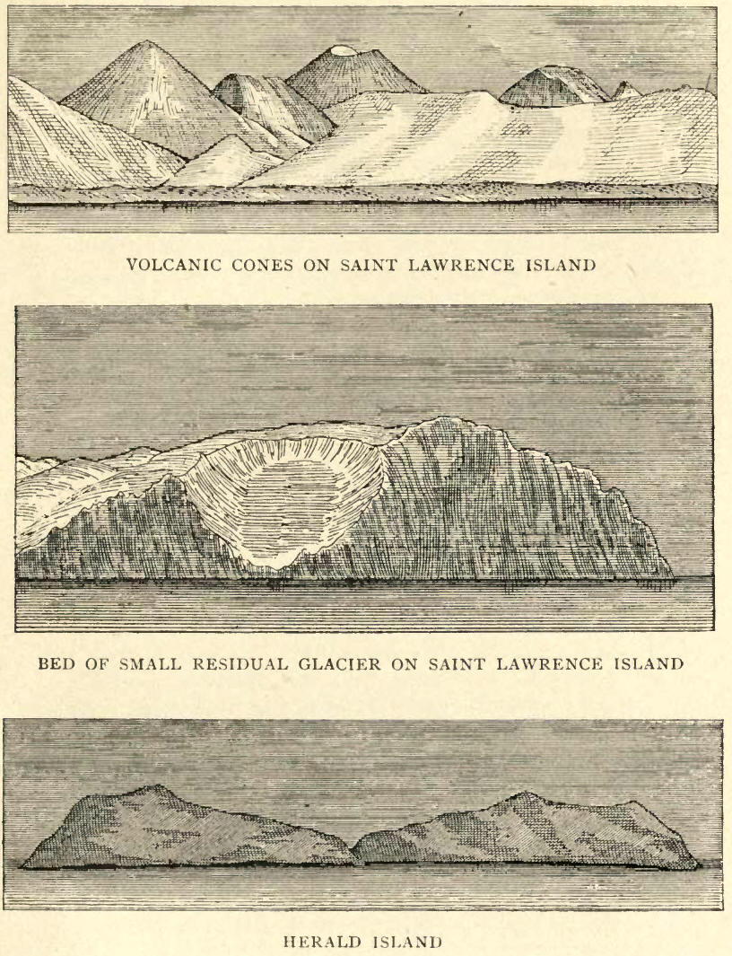 Sledge, King, and Herald Islands are evidently of similar origin, displaying the same glacial traces, and varying chiefly in the amount of post-glacial waste they have suffered, and in the consequent degree of clearness of the testimony they present. During our visit to Herald Island an exceptionally favorable opportunity offered as to the time of year, state of the weather, etc., for observation.