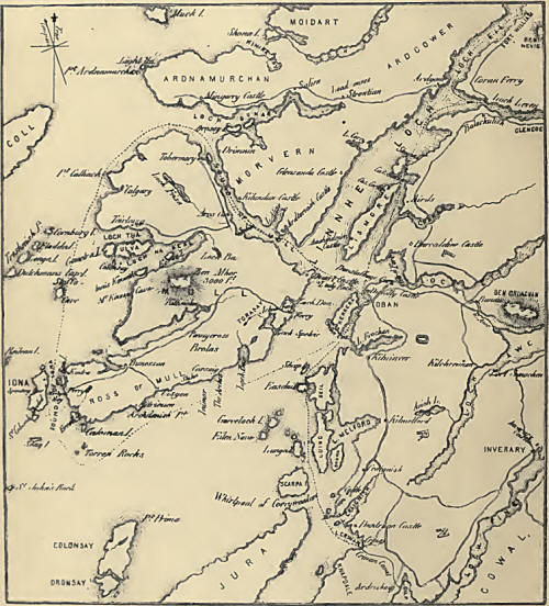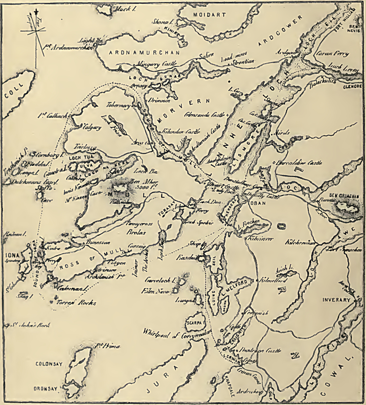 It is hoped that the frame work, here set forth, is sufficiently broad, for those following, to improve thereon. The place names in Mull have only in part been listed. The proper study of Mull should be based on an ordnance map, which has now been reduced, and published in Edinburgh. Here may be found all the proper names and accurate representation of all localities, including the actual height of the various bens.