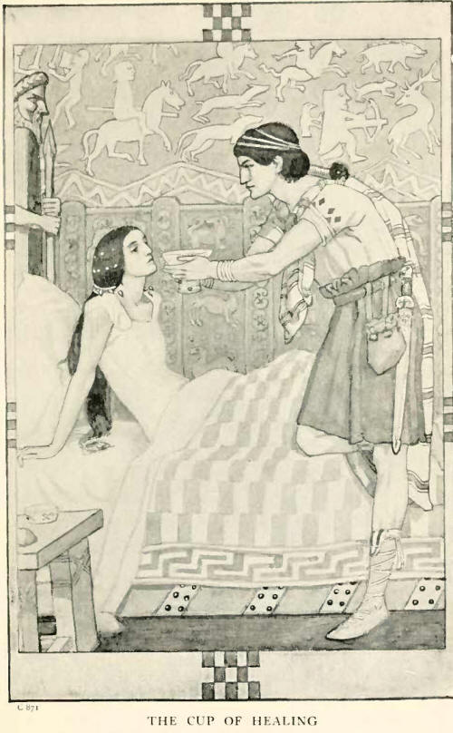 "Son of Angus-the-Ever-Young, you are welcome," exclaimed the king. "Why did you not send a message that you were coming? It is sorrowful to think you have slain my greatest warrior."