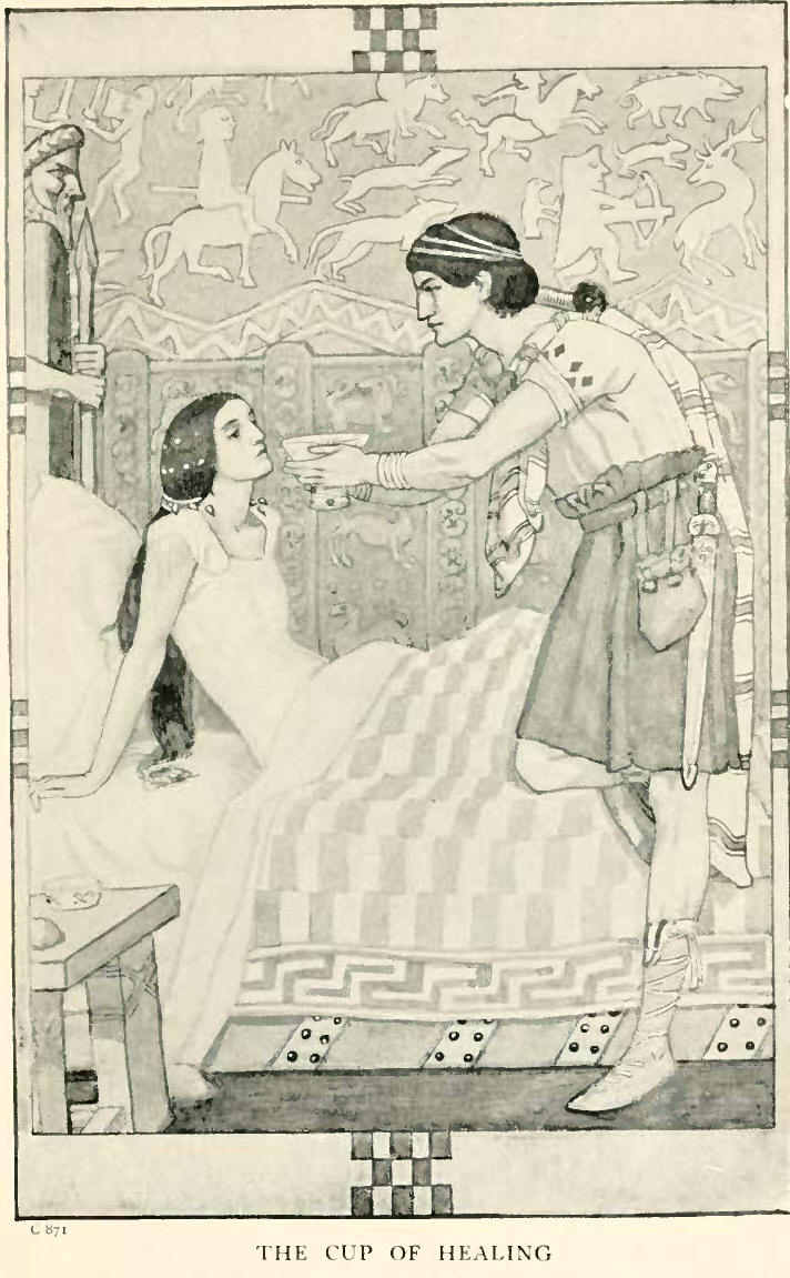 Then they all went to Finn's house, and a great feast was held in honour of Jeermit, who brought back with him the Cup-of-Healing which he had received from the KIIla of Wonder-Plain.