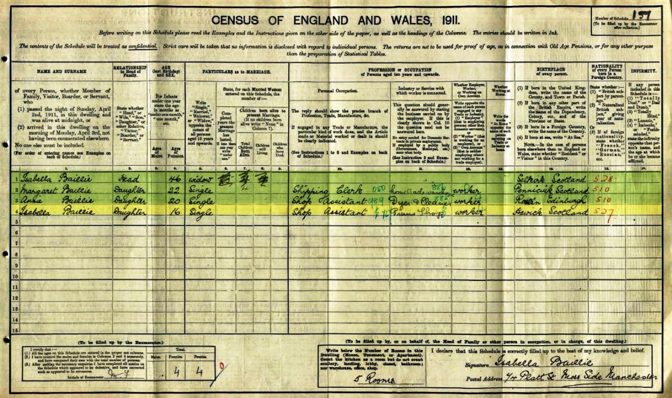as Isabella (Senior) as a widow, Margaret as a Shipping