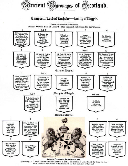 Of the more illustrious personages of the family of Argyle, memoirs are subsequently given in larger type. The conspicuous figure which they made in the history of their country, and the prominent part which the family has always acted in Scottish affairs, entitle its more celebrated members to separate biographies.