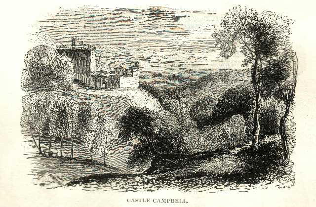 The manner in which the lordship of Campbell and Castle Campbell in the parish of Dollar came into the possession of the family of Argyle, is detailed in the New Statistical Account of Scotland with considerable research, Isabella Stewart, supposed to be the eldest daughter of John third Lord Innermeath, and first countess of Argyle, inherited about 1460 one-third of the lands of Dollar and Gloom, supposed to be the unentailed portion of the estate of Innermeath, as heir-portioner with her two sisters, – Margaret, married to Sir Colin Campbell of Glenorchie, ancestor of the marquis of Breadalbane; and Marion, married to Arthur Campbell of Ottar. The third belonging to Lady Campbell of Glenorchie, was ceded to the Argyle family by her son Duncan in a deed of renunciation still extant. How the third portion passed into the Argyle house does not appear; but it is all included in a charter of confirmation by James the Fourth of a charter by the bishop of Dunkeld, dated 11th May 1497. Muckartshill, a barony to the east of Dollar, appears about the same period (1491) to have been feued by Shivaz bishop of St. Andrews to the earl of Argyle. In 1489, by an act of the Scottish parliament the name of Castle Gloom, its former designation, was changed to Castle Campbell. It continued to be the frequent and favourite residence of the family till 1644, when it was burnt down by the Macleans in the army of the marquis of Montrose, along with every house in Dollar and Muckart, – two houses only, and these by mistake, escaping their savage fury. It was at Castle Campbell that Knox tells us in his history he visited Archibald the fourth earl of Argyle, and preached during successive days, to him and his noble relatives and friends. Although never repaired, the castle and lordship of Castle Campbell remained in the possession of the Argyle family till 1808, when it was sold.