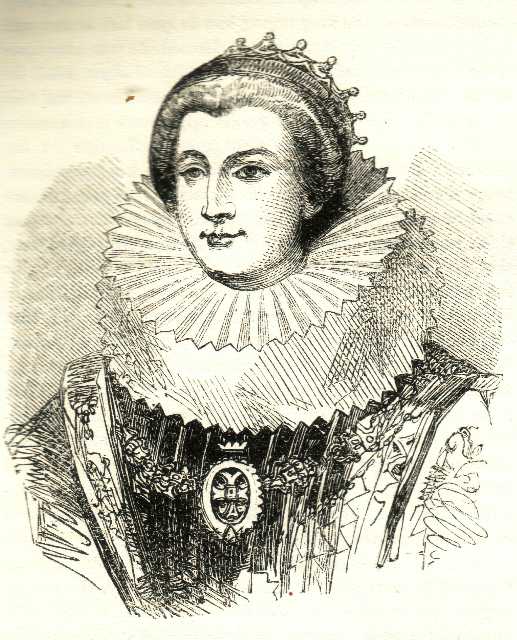 His first countess was introduced by Lord Walpole into his Appendix, for having collected and published in Spanish, a set of sentences from the works of St. Augustine. Her portrait will be found in Walpole’s ‘Royal and Noble Authors,’ Park’s edition, 1806, vol. v. p. 71. Douglas says, and it seems likely, that the portrait may be that of Lady Anne Douglas, but the authoress must have been Anne Cornwallis, his second wife, as the latter was in Spain with him, but the former died many years before he went to that country. The following cut is taken from that portrait of the countess of Argyle.