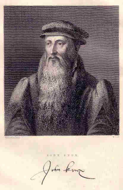 KNOX, JOHN, the chief promoter of the Reformation in Scotland, was born in 1505, at a place called Giffordgate, a suburb of Haddington. The statement, that the village of Gifford, East Lothian, was his birthplace, is a mistake. It was not then built. In the suburb of Giffordgate, there were some houses known by the name of Knox’s Walls. His mother’s name was Sinclair, and in subsequent times many of his letters were, for precaution’s sake, subscribed ‘John Sinclair.’ He received the rudiments of his education at Haddington grammar school, and studied philosophy and theology at St. Andrews, under John Major, then principal of St. Salvator’s college. His progress in learning was rapid, and he took the degree of M.A. before the usual time, after which he taught philosophy as regent of one of the classes in the university. About the same time he was admitted into priest’s orders long before the age appointed by the canons for receiving ordination. The writings of the ancient Fathers, particularly of Jerome and St. Augustine, opened his eyes to the subtleties of the school theology, and he resolved to attach himself to a more plain and practical method of interpreting the Scriptures than that offered by the writings of the scholastic divines. While yet engaged enquiring after the truth, he attended the sermons of Thomas Gwilliam, or Williams, a friar, who had the boldness to preach against the Pope’s supremacy. In 1543 Gwilliam was chosen preacher to the Regent Arran. “The man,” says Calderwood, (vol. i. p. 155), “was of a sound judgment, reasonable good literature in respect of the time, of a prompt and good utterance: his doctrine was wholesome, but without vehemencie against superstitioun. Johne Rough, who after suffered for the truthe in England, howbeit not so learned, and more simple, and more vehement against all impietie, preached also sometimes. This Thomas Gwilliam was a blacke frier, borne beside Elstone-furde (Athelstaneford) in East Lothian, and provinciall of the blacke friers of Scotland. He was the first man from whome Mr. Knox receaved anie taste of the truthe.” But Knox was still more impressed with the unsoundness of the popish system by the preaching of the celebrated George Wishart, who afterwards suffered martyrdom at the stake, through the persecution of Cardinal Bethune.