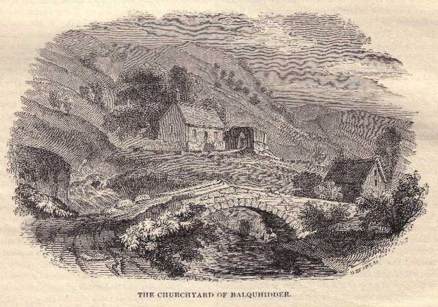 For some years he continued to levy black-mail from those whose cattle and estates he protected, and although an English garrison was stationed at Inversnaid, near Aberfoyle, his activity, address, and courage continually saved him from falling into their hands. The year of his death is uncertain, but it is supposed to have been after 1738. He died at an advanced age in his bed, in his own house at Balquhidder. When he found death approaching, “he expressed,” says Sir Walter Scott, “some contrition for particular parts of his life. His wife laughed at these scruples of conscience, and exhorted him to die like a man, as he had lived. In reply, he rebuked her for her violent passions, and the counsels she had given him. ‘You have put strife,’ he said, ‘between me and the best men of the country, and now you would place enmity between me and my God.’ There is a tradition noway inconsistent with the former, if the character of Rob Roy be justly considered, that, while on his deathbed, he learned that a person with whom he was at enmity, proposed to visit him. ‘Raise me from my bed,’ said the invalid, ‘throw my plaid around me, and bring me my claymore, dirk, and pistols – it shall never be said that a foeman saw Rob Roy Macgregor defenceless and unarmed.’ His foeman, conjectured to be one of the Maclarens, entered and paid his compliments, inquiring after the health of his formidable neighbour. Rob Roy maintained a cold haughty civility during their short conference, and as soon as he had left the house, ‘Now,’ he said, ‘all is over, – let the piper play Ha til me tudidh,’ (we return no more), and he is said to have expired before the dirge was finished.” The grave of Macgregor, in the churchyard of Balquhidder, is distinguished by a rude tombstone, over which a sword is carved.
