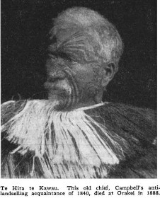 A word about Te Hira, of mess-of-pottage fame. I remember well that aristocratic-looking rangatira of Orakei in his old age, a white-moustached richly-tattooed chief, uncle of the leading spirit of the village, Paul Tuhaere. Te Hira saw the land that he would not sell to Campbell become a great city.