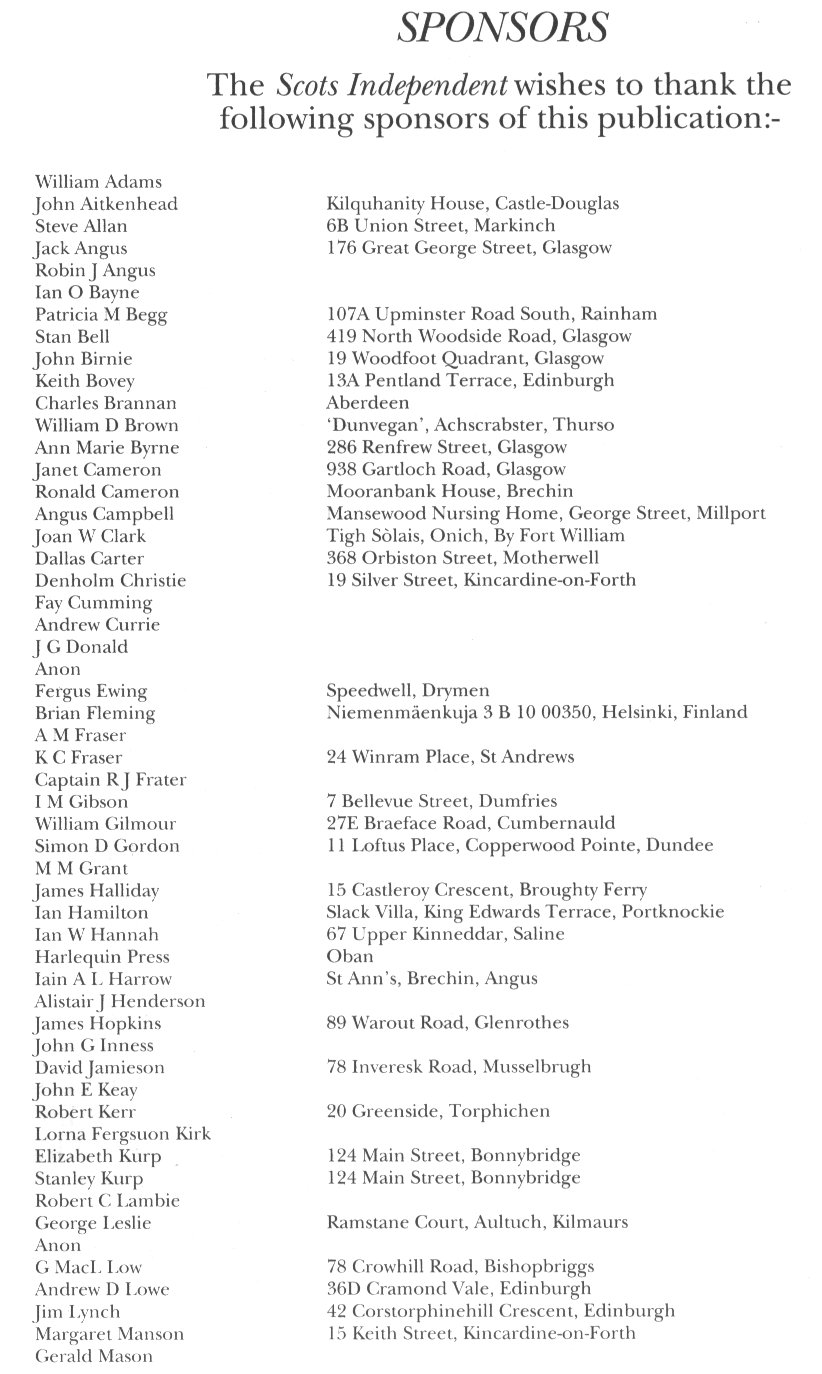 The Scots Independent wishes to thank the following sponsors of this publication:-