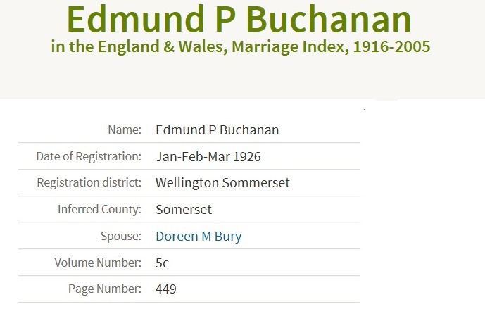 1926 Marriage Edmund P Buchanan Doreen M Bury