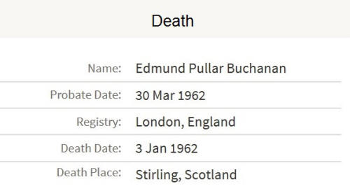 Death of Colonel Edmund Pullar Buchanan in 1962 ...