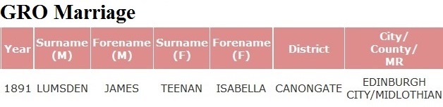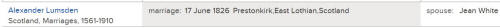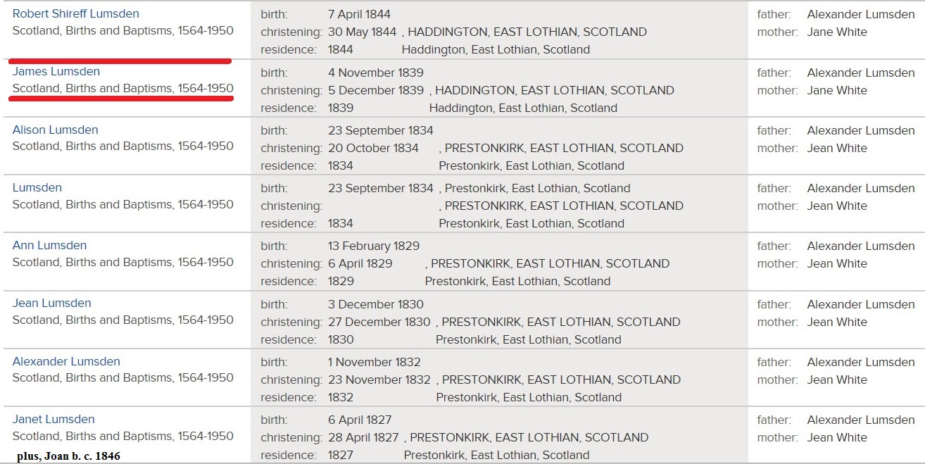 James in 1839, to Alexander Lumsden and Jean/Jane White