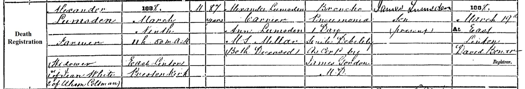 Hailes in Prestonkirk shows widower Alexander, his 90 year old widowed