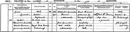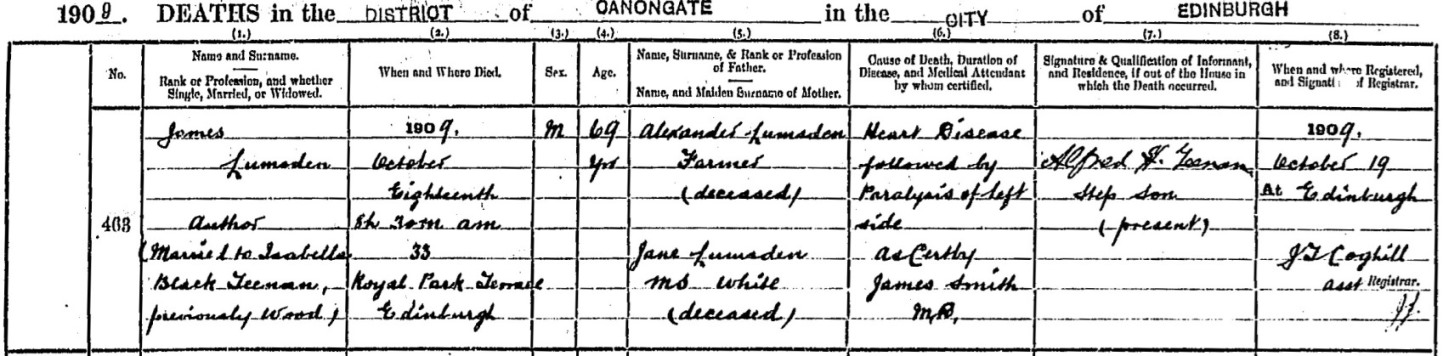 Edinburgh where they lived until he died on 18 October 1909. He is buried in