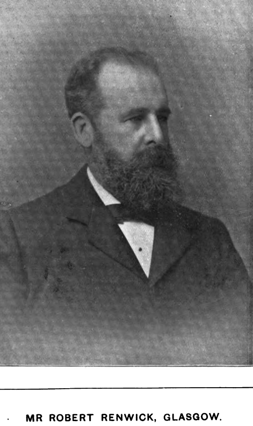 Mr Renwick is closely bound up in the work of his department and the historical studies of his hours of leisure. Earnest workers in old Glasgow history find themselves ever and again compelled to fly to him for information and advice, and from his stores of knowledge they invariably receive what they are in search of. His kindly nature is esteemed by all who know him—most deeply by those who know him best. A crack with him on Old Glasgow is a tieat of a high order to the student of the history of Saint Mungo’s City.