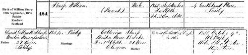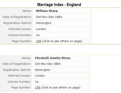 In late 1884, William married his 1st cousin Elizabeth Amelia Sharp.