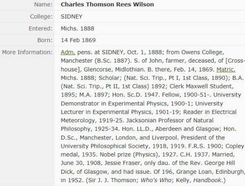Of course, he wasn't particularly interested in particles, he was interested in cloud. He wanted to make artificial cloud and then discovered this effect. Who would have thought that sitting on the top of Ben Nevis being in wonder at the clouds would have ended up actually laying the foundation of discovering things at the very small level. That must have been quite something to have gone from just being interested in clouds to ending up inventing something which was the birth of particle physics."