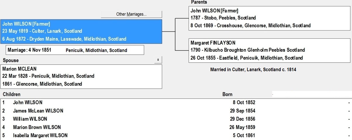Later, that year, John Wilson Jnr. marries Marion McLean.