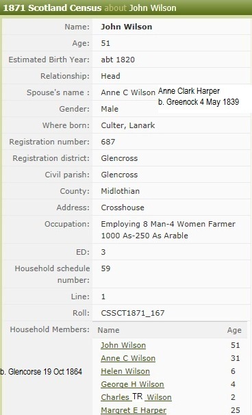 John Wilson Jnr. re-marries, an Annie Clark Harper in 1863.