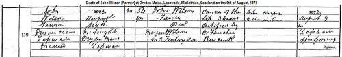 However, if we now go back to the 1700s, we can trace much of what led up to the aforesaid upheavals from the deaths in 1869 and 1872 of, not only Charles' grandfather John Wilson Snr., but also his father John Wilson Jnr. Charles, as a mere baby at this time, would have been blissfully unaware of these sad events.