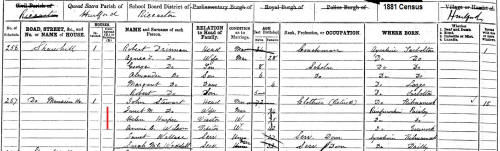 And it is living with this John Wilson at 155 Lloyd Street, Chorlton, Manchester in 1881, that we find 12 year old Charles, 14 year old brother George and 16 year old sister Helen.