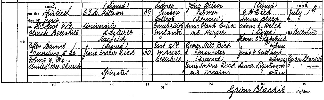 Marriage of Charles Thomson Rees Wilson to Jessie Fraser Dick