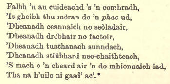 The next member of the Presbytery whom I would mention is air. Eneas Macleod, minister of Rogart. His father I have already noticed as the author of "Caberfeidh," the Gaelic satire, and well known in his native parish of Lochbroom as a poet, by the name of "Tormaid Ban," or the fair-haired orman. Mr. Macleod of Rogart was his second son. His eldest son was Professor of Hebrew in the University of Glasgow, and bequeathed his valuable library to King's College, Aberdeen, of which both he and his brother, the minister of Rogart, were alumni. The latter was admitted minister of that parish in 1774. Mr. Macleod was not a popular, nor a very evangelical preacher. He had a rich vein of humour added to great penetration and solidity of judgment, and, though not himself a poet, he possessed a high taste for the art, and ardently patronised it. With Rob Donn he was intimate, and he committed to writing the poems of that hard from the poet's personal recital. It is to this manuscript that we are indebted for the edition of Rob Donn's poems, edited in 1829 by Dr. Mackay. Dfr. Macleod married Jane Mackay, the daughter of a respectable farmer who occupied the place of Clayside, now a part of the extensive ducal manor of Dunrobin. This Mr. Mackay was a connoisseur in card-playing, and was therefore recognised among his associates under the name of "Hoyle." By his wife ,Mr. Macleod had four sons, Donald, William, Hugh, and Wemyss, and three daughters, Esther, Jean, and Elizabeth. He died on the 18th of May, 1791, and was succeeded by the Rev. Alexander Urquhart.