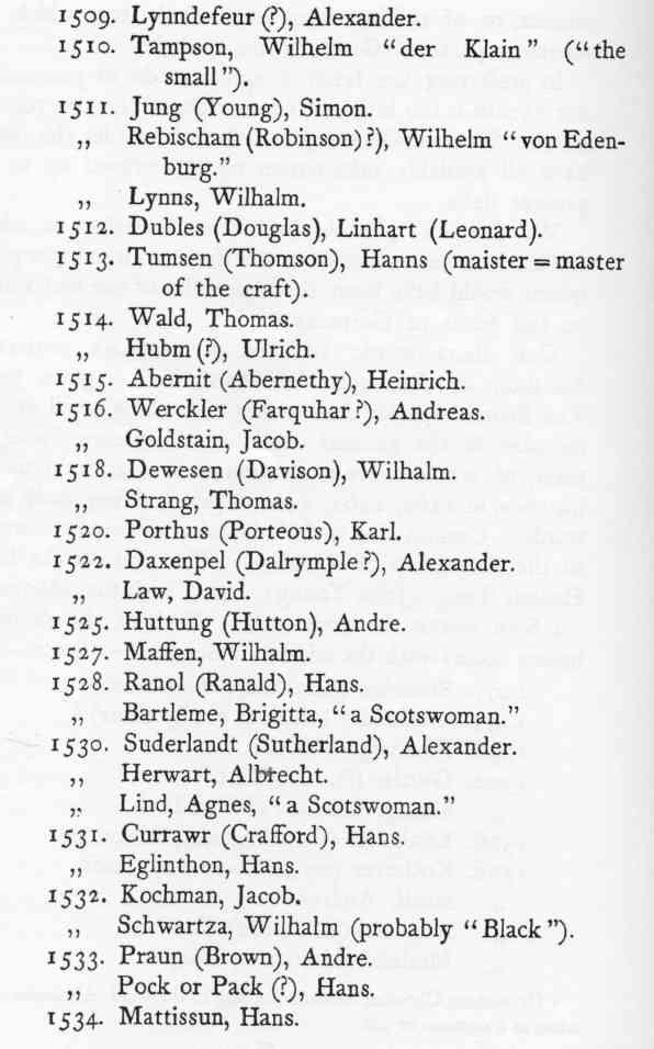 We therefore publish the list as it reaches us, asking the kind reader mentally to transfer it to its proper place, which would have been the Appendix of our first volume on the Scots in Germany.