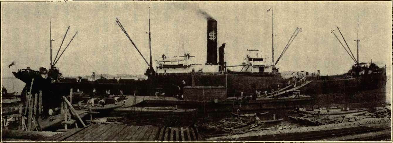 a great 'Rainbow Flag' to the breeze as the 'M. S. Dollar' tender left