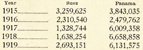 A comparison of the net registered tonnage passing through the Suez and Panama canals for a period of live years follows:
