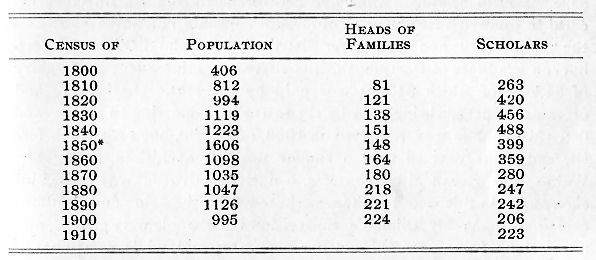 One thing must be kept in mind that the law regulating "school age" has been several times altered. In 1800 and for some decades after, "school age" was from four to 18. The term has been gradually contracted till it is now from five to 18, which will account for part of the decreased number of scholars.