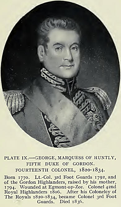 In 1834 Colonel the Duke of Gordon was removed to the Scots