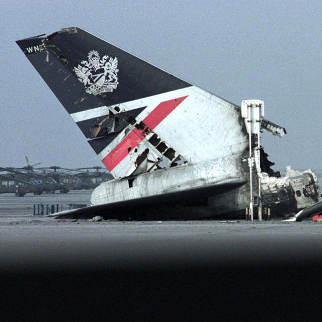 out of Kuwait. Photo of tail of BA Flight 149 that was