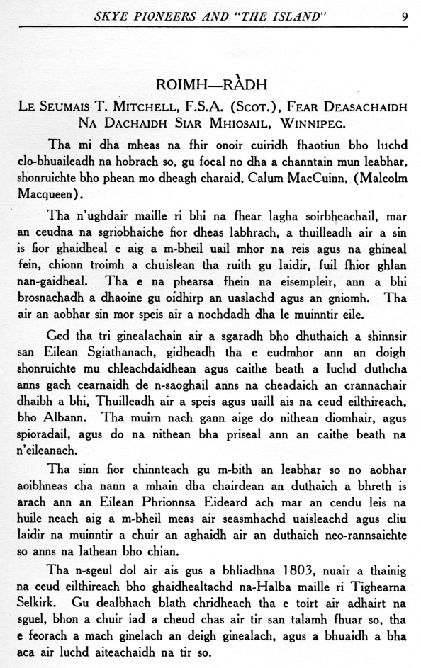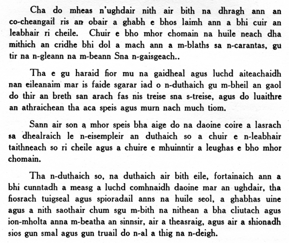 For this masterly labor of love no amount of research seemed too great or too tedious for the author. Indeed he has placed all of us whose hearts still go out in warmth to the old home across the seas, under a very deep obligation. While all other peoples manifest a regard for the place of their birth and the ashes of their fathers, it seems to me that in the Hebridean this worthy sentiment finds its most beautiful expression. Time and distance in his case do not weaken it-neither do generations efface it.
