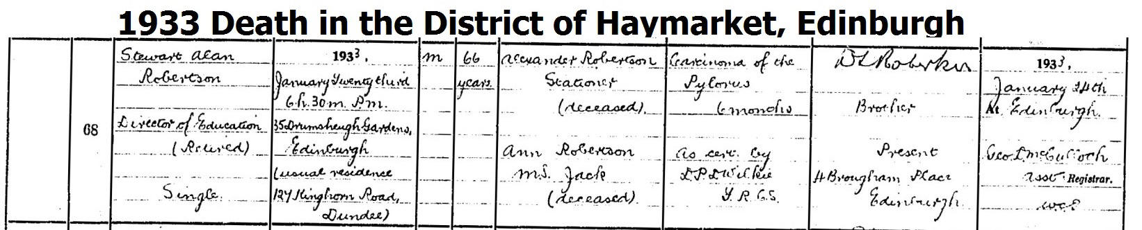 1933, Jan 24 Death of Mr Stewart A. Robertson