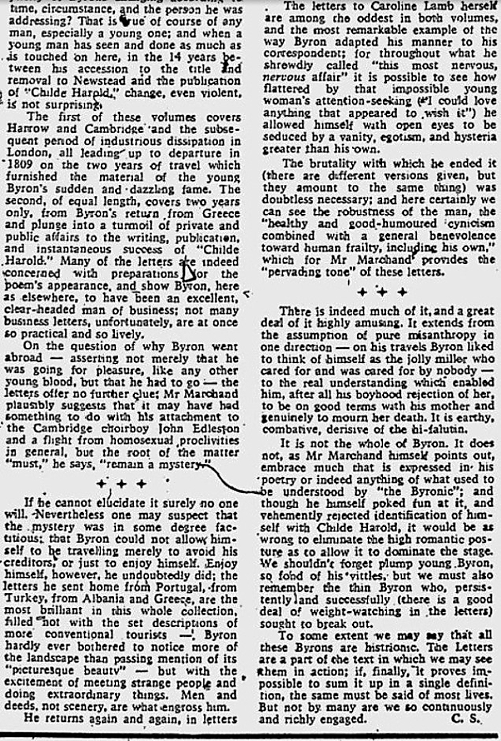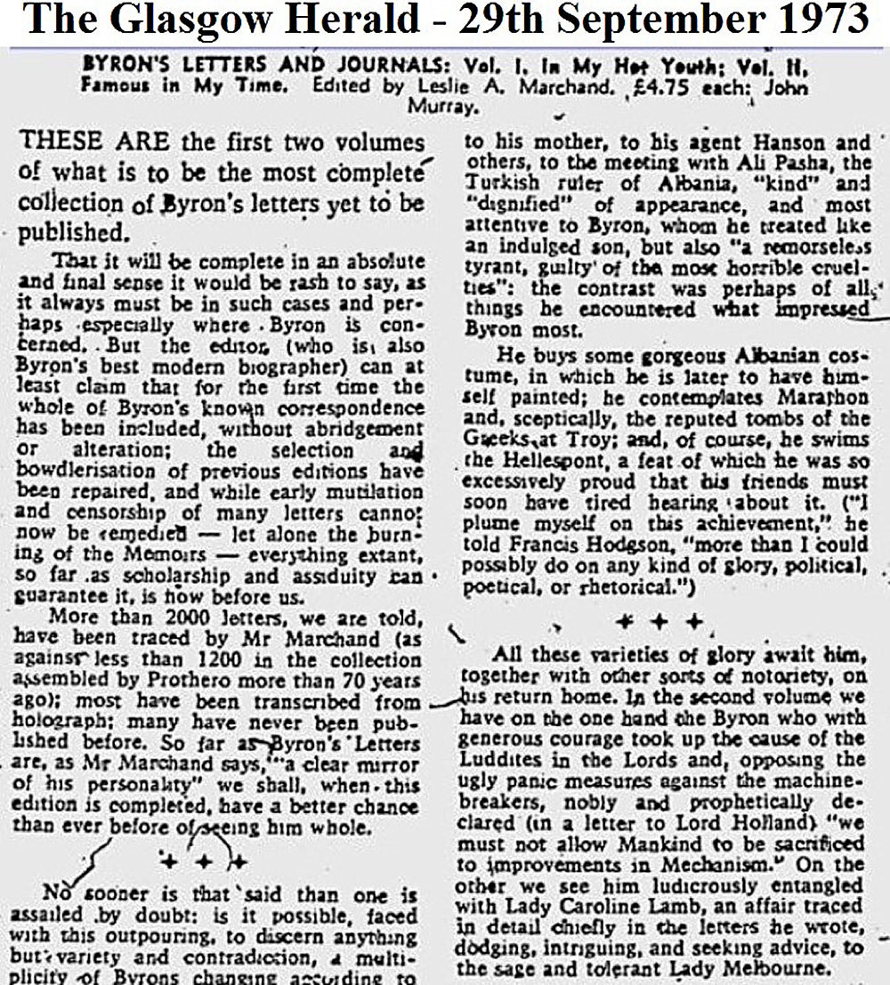 1973, Sep 29 Byron's Letters and Journals